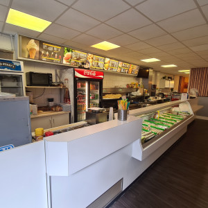 De snackbar (ca. 84 m2) bestaat uit een afhaalgedeelte en een zitgedeelte met ca. 30 zitplaatsen. Voor de afhaal is ook een verkoopluik aan de gevelzijde geplaatst. Hier staat ook de imposante softijsmachine van Carpigiani.
